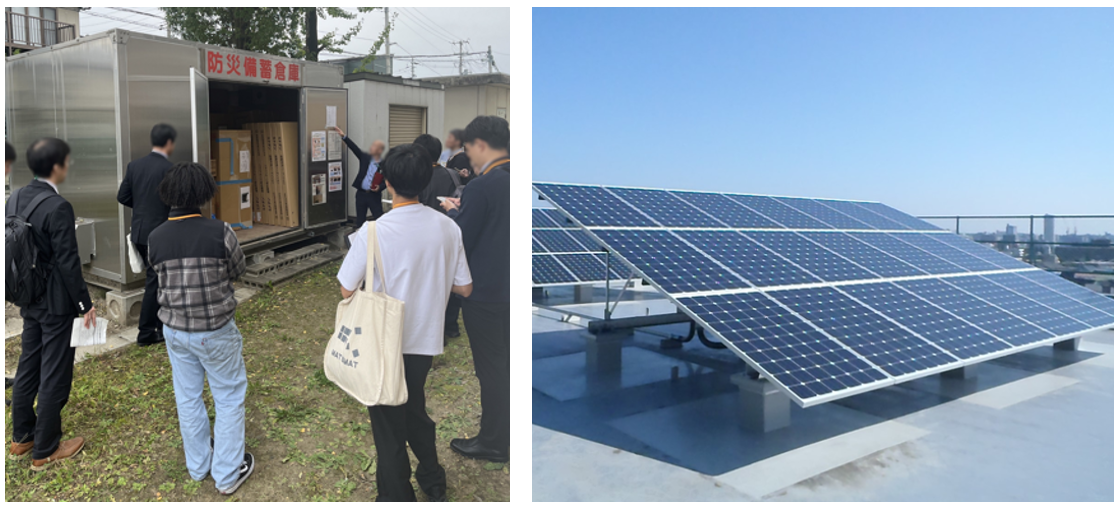 - 自治体(仙台市)の太陽光発電設備・災害物資備蓄倉庫を見学しながら、自治体担当者から直接、防災・減災および気候変動対策・脱炭素領域に関する業務や課題意識の説明を行います。