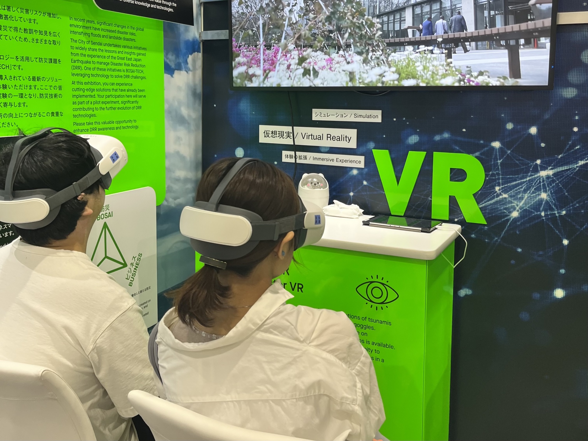 防災意識の向上や普及啓発を促進するために、安全な環境で災害発生時の心理的・身体的な反応を体感し、災害への備えの重要性等をリアルに実感できるVRコンテンツ。ブースでは、「津波・洪水編」のVRを来場者に体験いただきました。