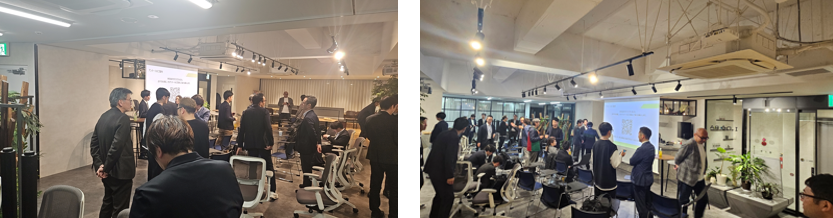 セッションで語られた「企業間連携」が、交流会の中で、企業同士の具体的なやり取りとして早くも表れ始めていました。