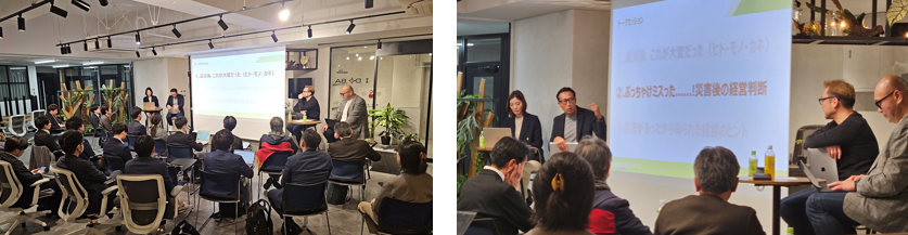 仙台BOSAI-TECHが主催する「Future Awards 2025」第2回プログラムとして、東日本大震災を経験した仙台市の中小企業3社によるトークセッションを2025年11月27日に開催しました。当日はBOSAI-TECH会員企業のみならず、宮城県内の中小企業・自治体の参加者を含め、多様なバックグラウンドを持つ25名が参加。震災時の中小企業の判断に焦点を当て、ソリューションによって解決すべき課題を探る貴重な機会となりました。