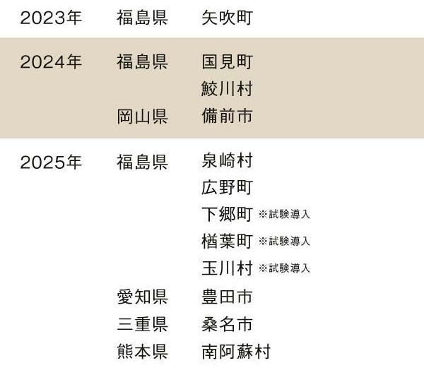 2025年9月現在、福島県において19 か所の⾃治体で導入。導入率30%を達成